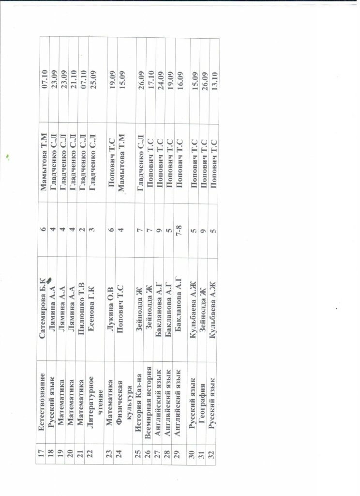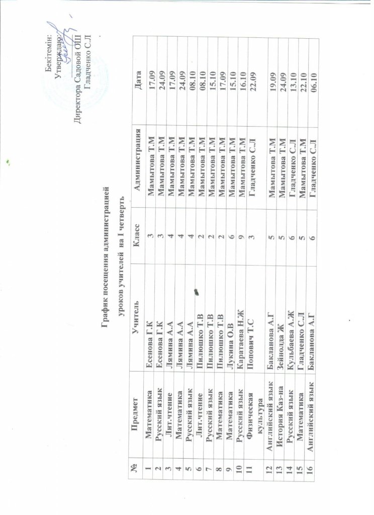 Әкімшілік тарапынан сабақтарға қатысу кестесі (1-тоқсан).